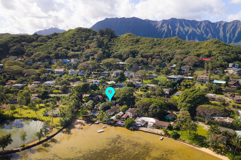 Cozy, laid back and charming beach bungalow in move-in condition. Enjoy this single family home that is big on indoor/outdoor living with large patio off the living room with beautiful original hardwood floors inside. You will love the built ins, storage and floor plan that features renovated baths and large yard with tropical landscaping. Located one house from the ocean where you can paddle to the famous Kaneohe Sandbar. Great for pets. You can see China Man's Hat, and a glimpse of water from the top of the drive way, or build up to wake up to one every day! The possibilities are endless.