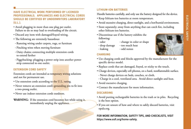 A: When purchasing an electric device, make sure it has the "underwriters laboratories" mark, which shows that the product has been tested for safety. It is also best to always follow the manufacturer's instructional guide for charging and storing each device. Always use the cord and power adapter made specifically for that device. Never charge a device under a pillow, on a bed or near anything combustible. Batteries and devices should always be kept at room temperature, never placed directly in the sun. Storing batteries should also be kept away from anything flammable. Never toss loose lithium-ion batteries in the trash. The HFD reccomends contacting the Honolulu Department of Environmental Services Refuse Divisiion at 808-768-3201 for instruction on proper disposal.