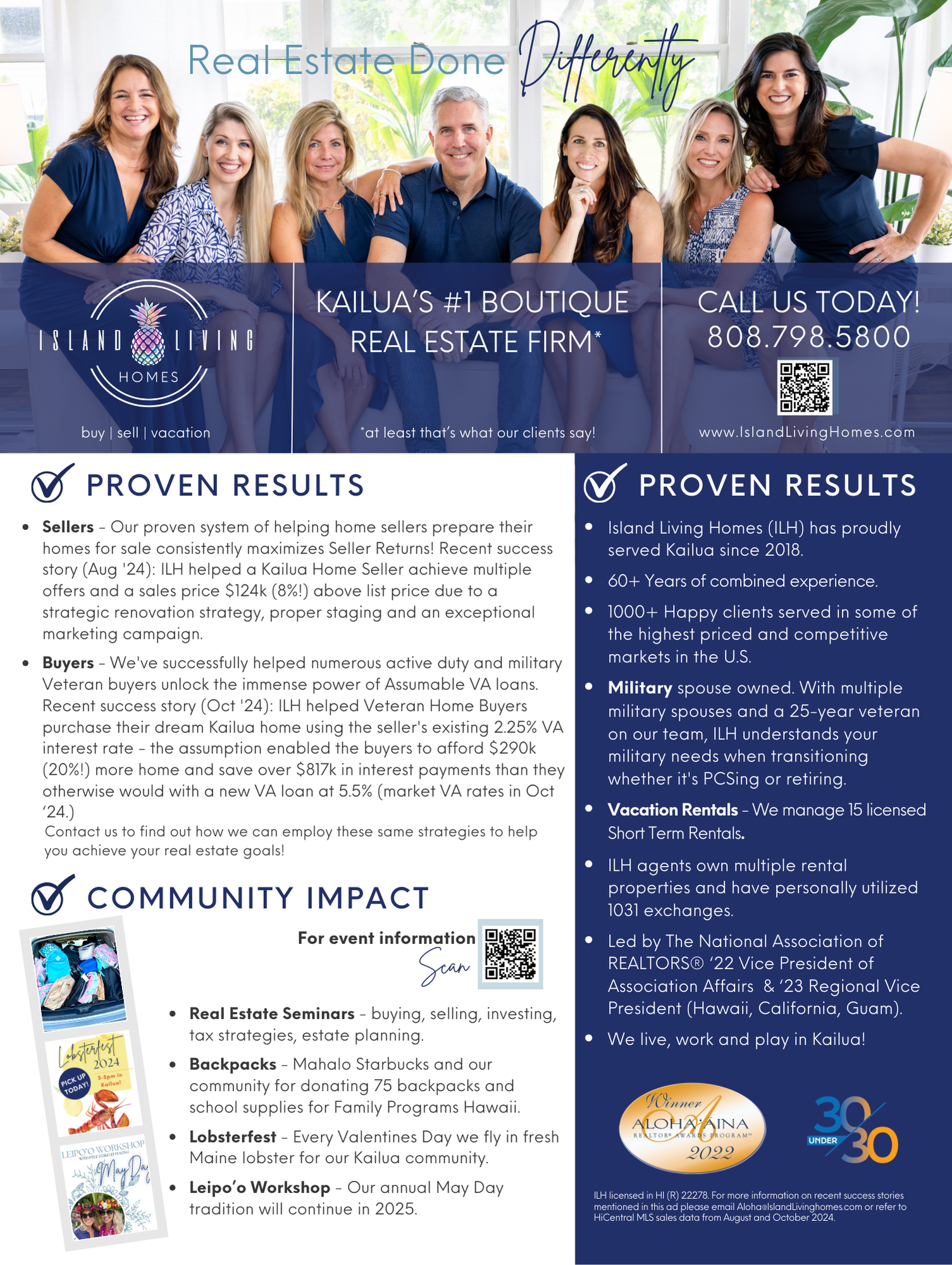 We’re excited to announce that Island Living Homes is featured in the latest Go Kailua Magazine! Did you receive your copy? The article highlights our success in helping sellers and buyers achieve exceptional results, our commitment to the local community, and what sets us apart. Plus, we’ve got a great lineup of events for next year—something fun for the whole family!